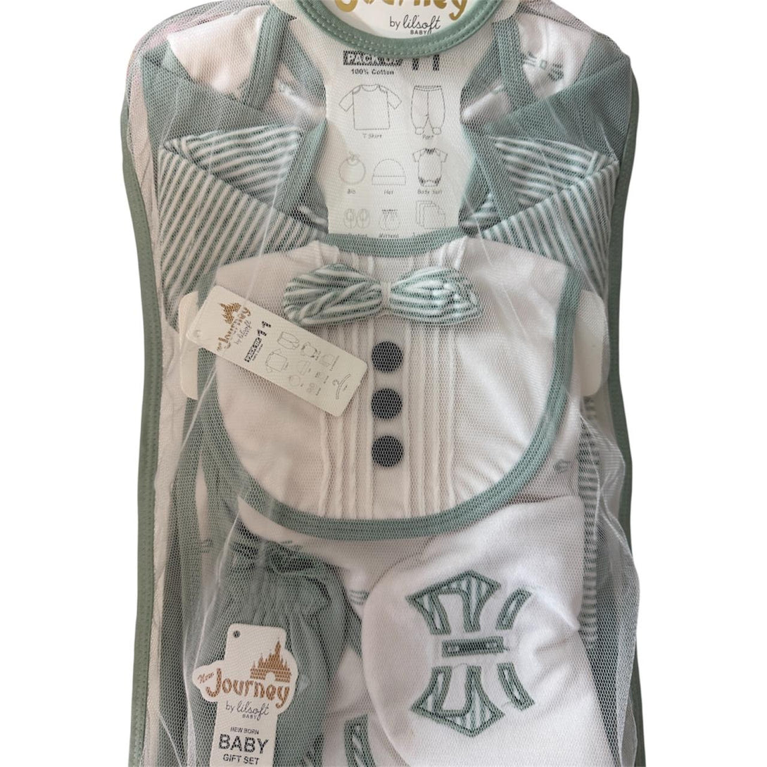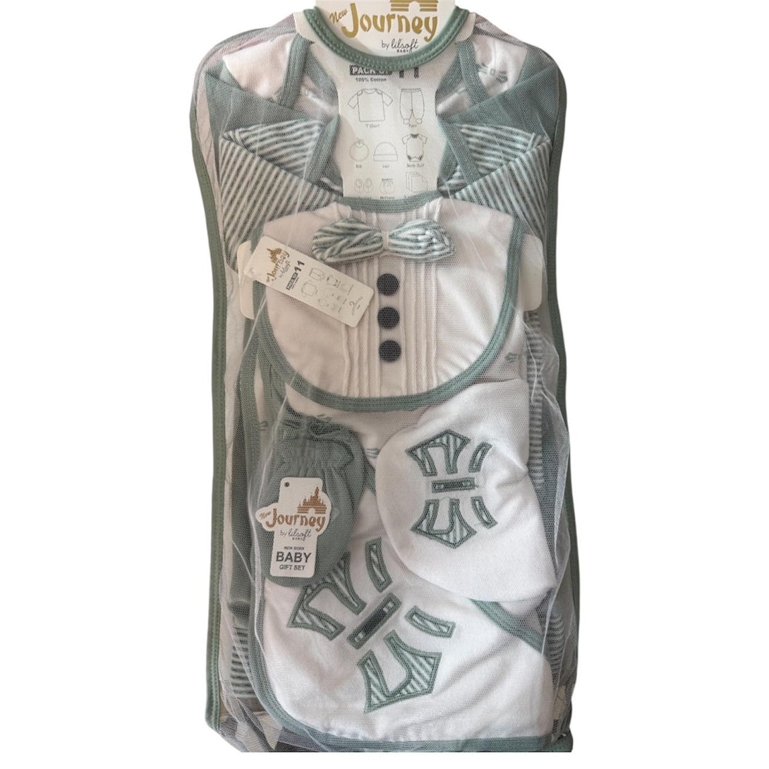Wrap your baby in warmth and charm with the Green and White Fleece Starter Set from our winter collection. This playful bundle includes a soft shirt, cozy close-feet trousers, a bib with a cute bow, snug cap, comfy bodysuit, booties, mittens, and three gentle washcloths. Plus, a wrapping sheet for snug swaddling and a handy hunger set with easy buttons make dressing and feeding a breeze. Perfect for both girls and boys, it’s winter-ready style with all the cozy essentials your little one needs.