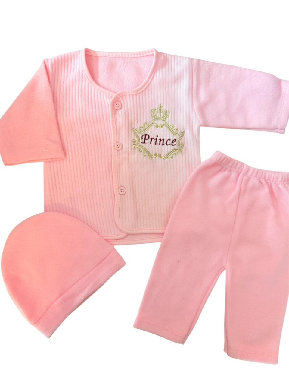 This delightful pack of three includes a cozy Little Prince-themed shirt, matching trousers, and a soft cap, all crafted from warm fleece fabric. Available in charming shades of green, blue, and pink, each piece keeps your little one snug and stylish through cooler days. Perfect for playful adventures or quiet naps, this set combines comfort with adorable design, making dressing your child effortless and fun.