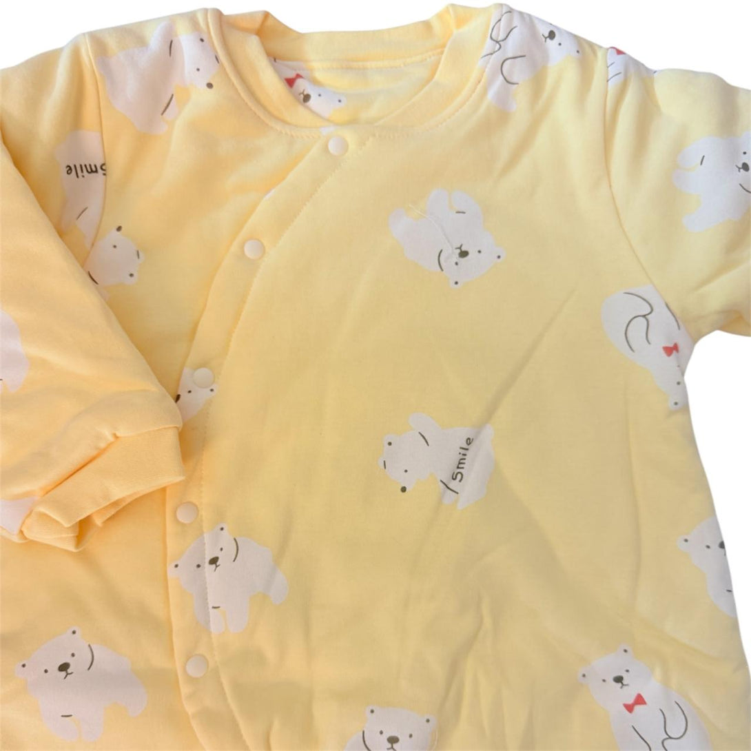 Keep your little one cozy and adorable this winter with the Smiling Bear Quilted Romper in sunny yellow. This romper combines warmth and comfort, crafted with soft, quilted fabric that gently hugs your baby while protecting against the cold. Featuring an irresistibly cute smiling bear design, it adds a playful touch to cold-weather outfits. Perfect for indoors or outdoor strolls, it’s easy to slip on and move in, ensuring your baby stays snug and happy all season long. Brighten up chilly days with this cheerful and practical winter essential.
